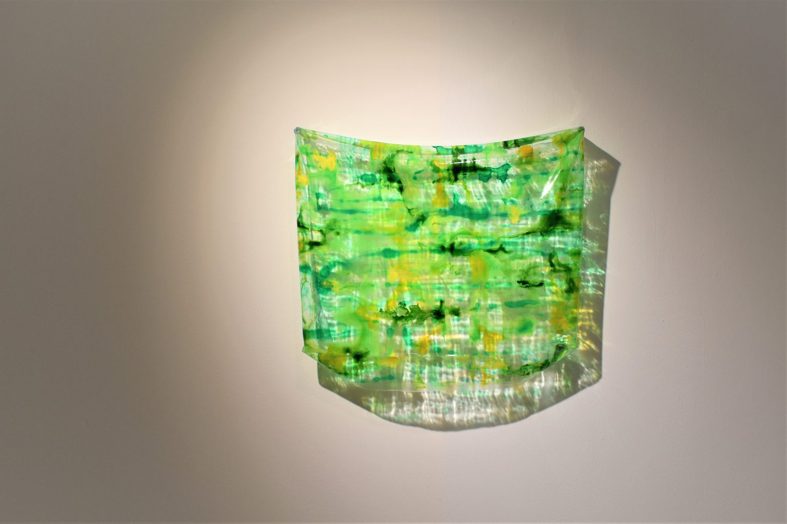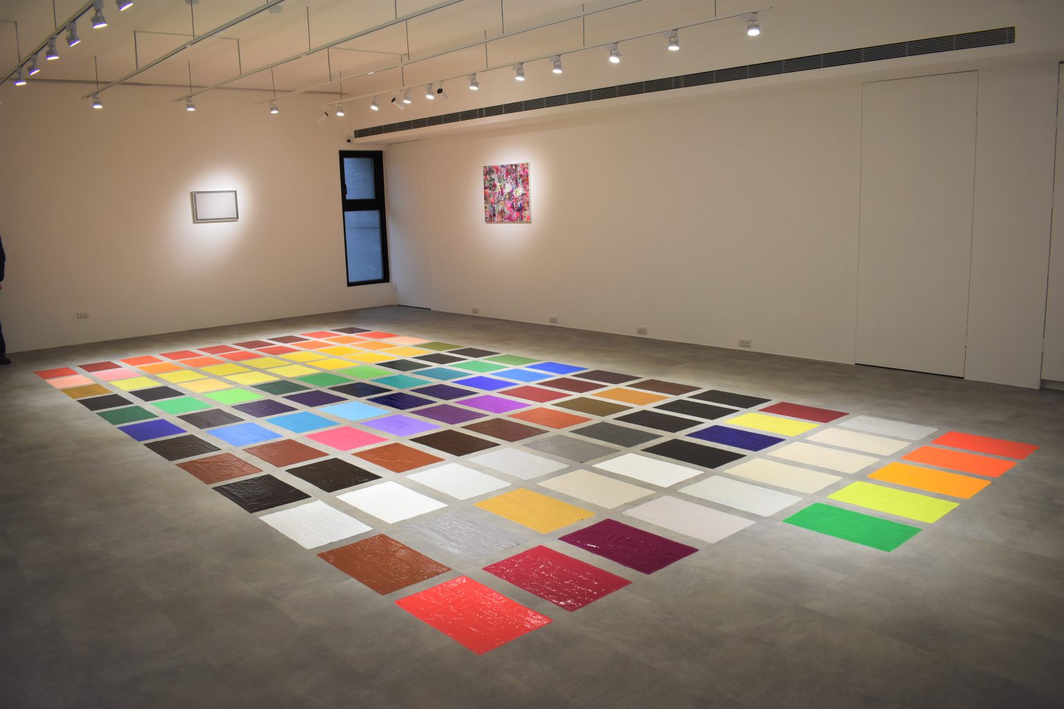 壓克力顏料不倚靠畫布與畫框,安然地平躺於地面。甫從日本京都藝術大學(Kyoto University of the Art, KUA)藝術研究科博士班畢業的黃冠鈞,於5日起在「2Gather藝起吧」舉辦個展《色物》,掙脫平面繪畫僅能存在畫布的束縛,將顏料形塑成如同塑膠膜般的軟材質,剖析顏料與物質之間的關係。