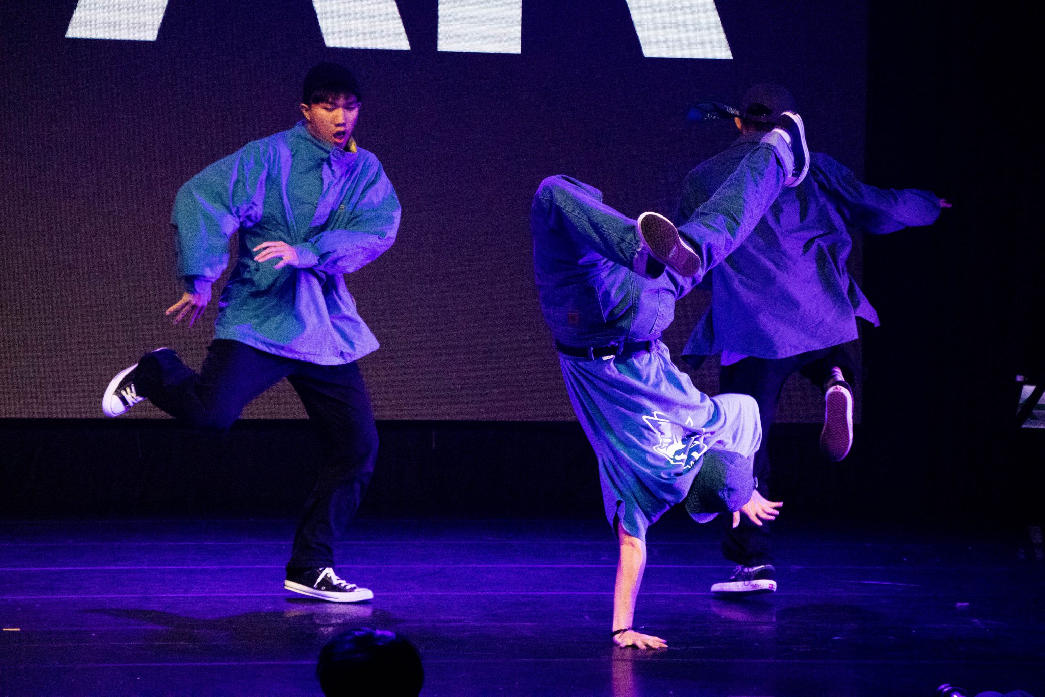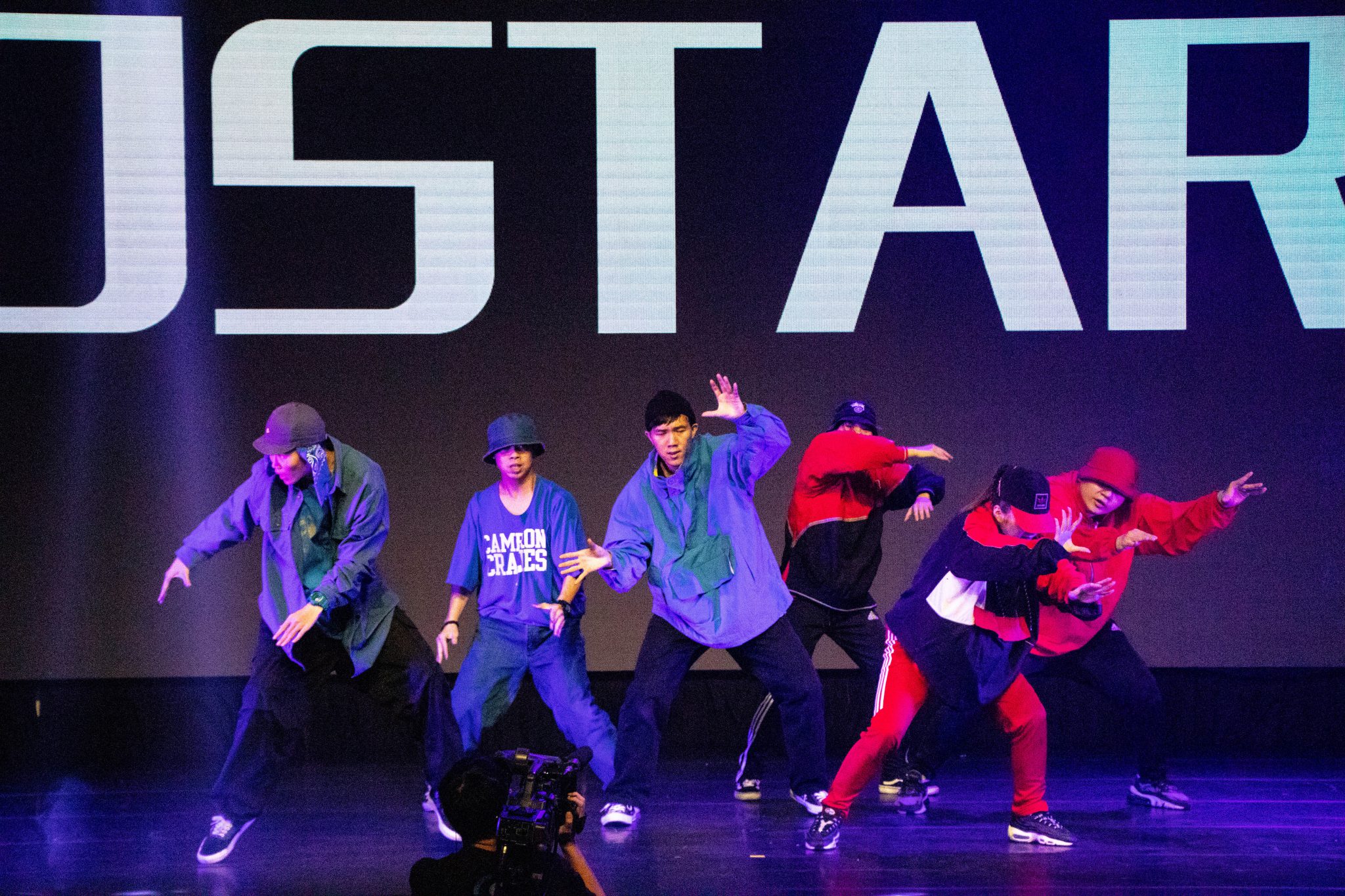 身穿藍色、紅色衣服的選手各據舞台一邊,輪流來到舞台中央「Battle」,決賽參賽隊伍「OSTAR」在比賽中重現經典電影〈Beat Street(熱街小子)〉橋段,搏得滿堂彩。中華民國109年全國大專校院熱舞大賽總決賽12月27日於三創生活園區(Clapper Studio)舉行,八組初賽晉級隊伍同場較勁。擅長嘻哈(Hip-hop)舞風的「OSTAR」在第一階段賽事中,以合作導師擅長的霹靂舞(Breaking)舞蹈迎敵,團隊勇於挑戰自我,展現多變性。