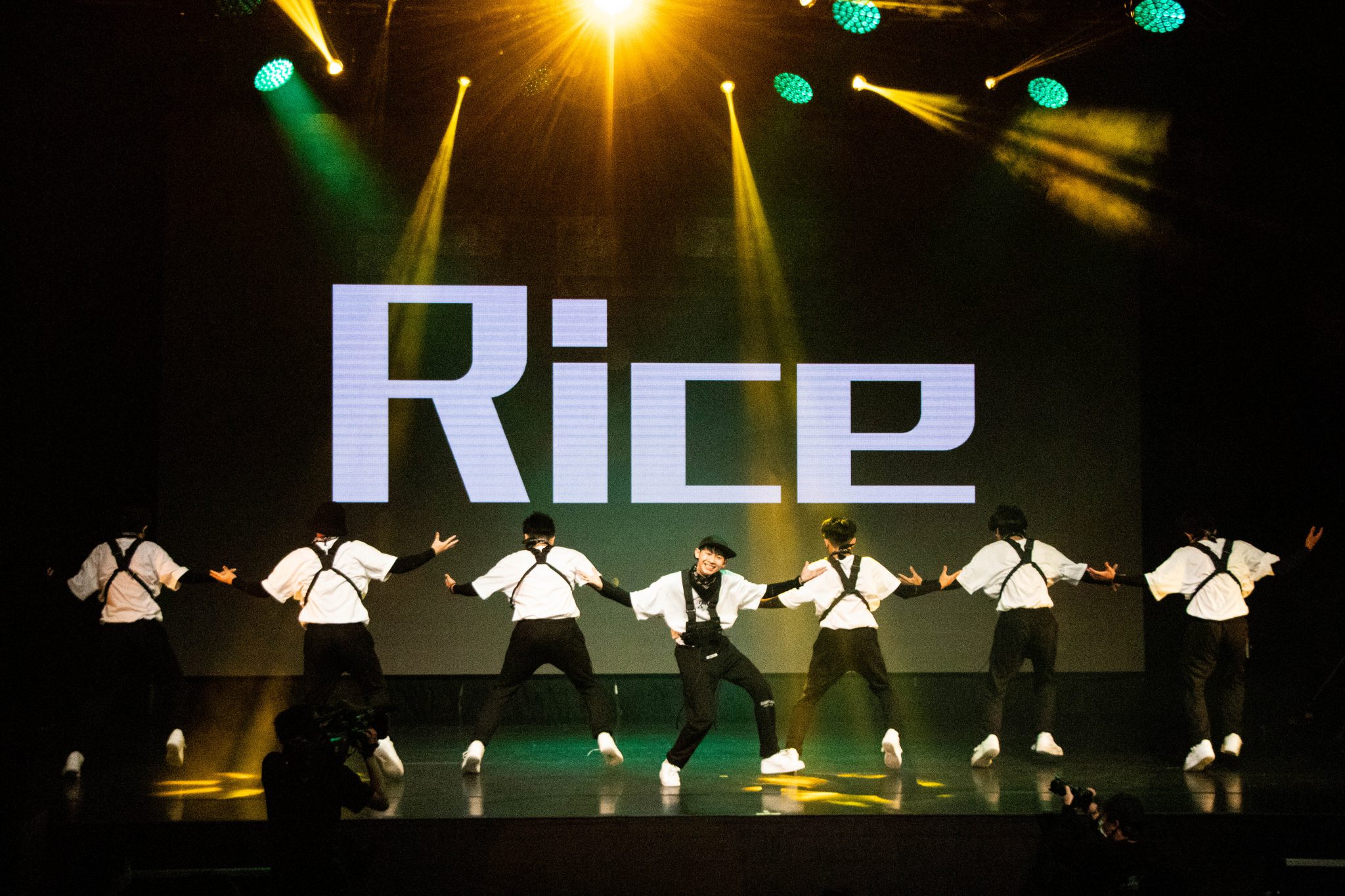 賽場中另一焦點則為臺北市立大學七人男子團體「RICE」,他們隨著拍點節奏強烈的音樂,快速變化舞蹈動作,再加上一身全黑工裝打扮,營造一股強勁的暗黑風格。「RICE」最終以高強度舞蹈動作與具層次的走位編排,氣勢鎮壓全場,以兩回合累積最高分,霸氣奪冠。